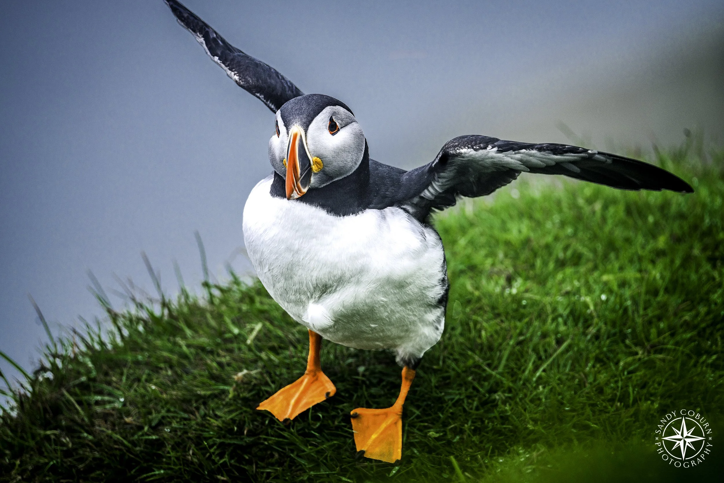 Grounded but poised, wings wide and eyes steady, this puffin weighs the wind. A moment caught between caution and instinct.