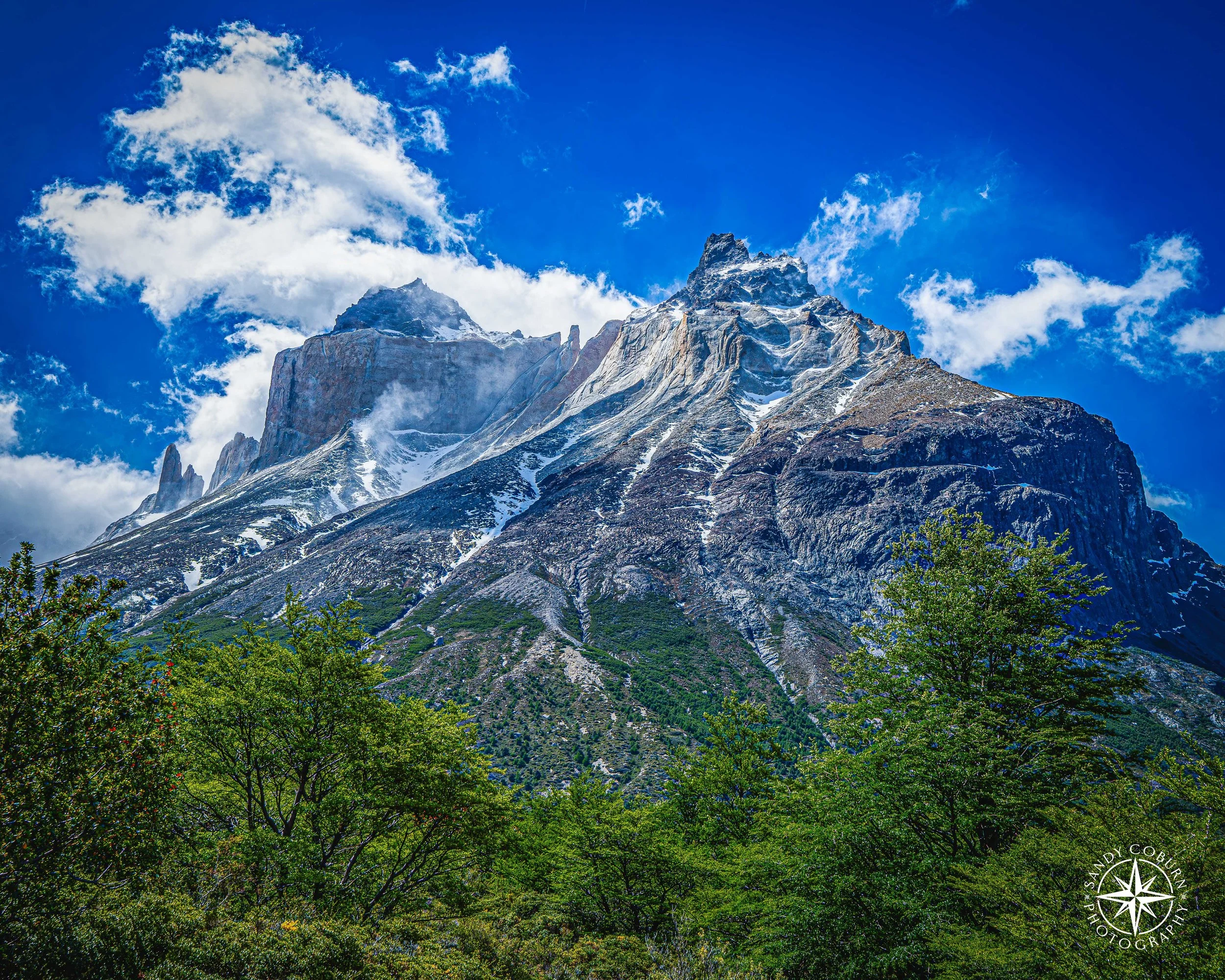 In Torres Del Paine, the wind sings across cerulean blue and turquoise lakes. Ancient granite peaks, sculpted 23 million years ago, tower above the earth. The ever-changing skies rapidly shift from serene blue to storms and snow, capping the dark mountains.