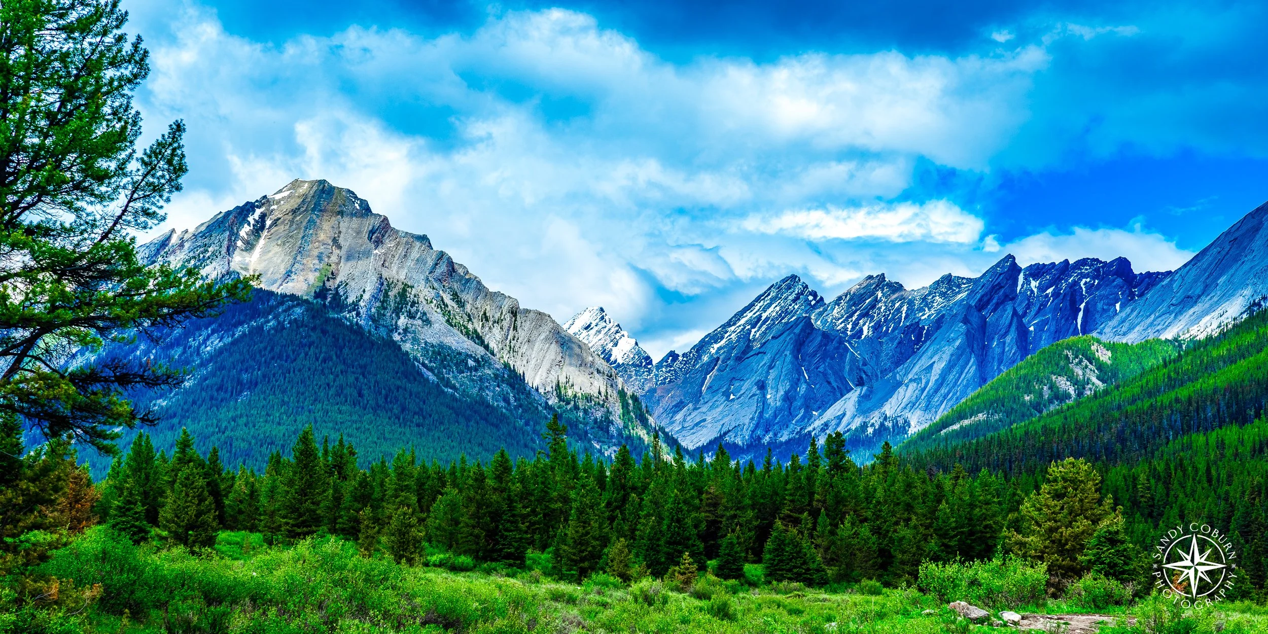 In June, as Banff begins to thaw, the meadow hums with green life while the mountains still wear their winter crowns. Here, snow and sun meet in a fleeting balance—emerald growth rising beneath sky-piercing peaks.
