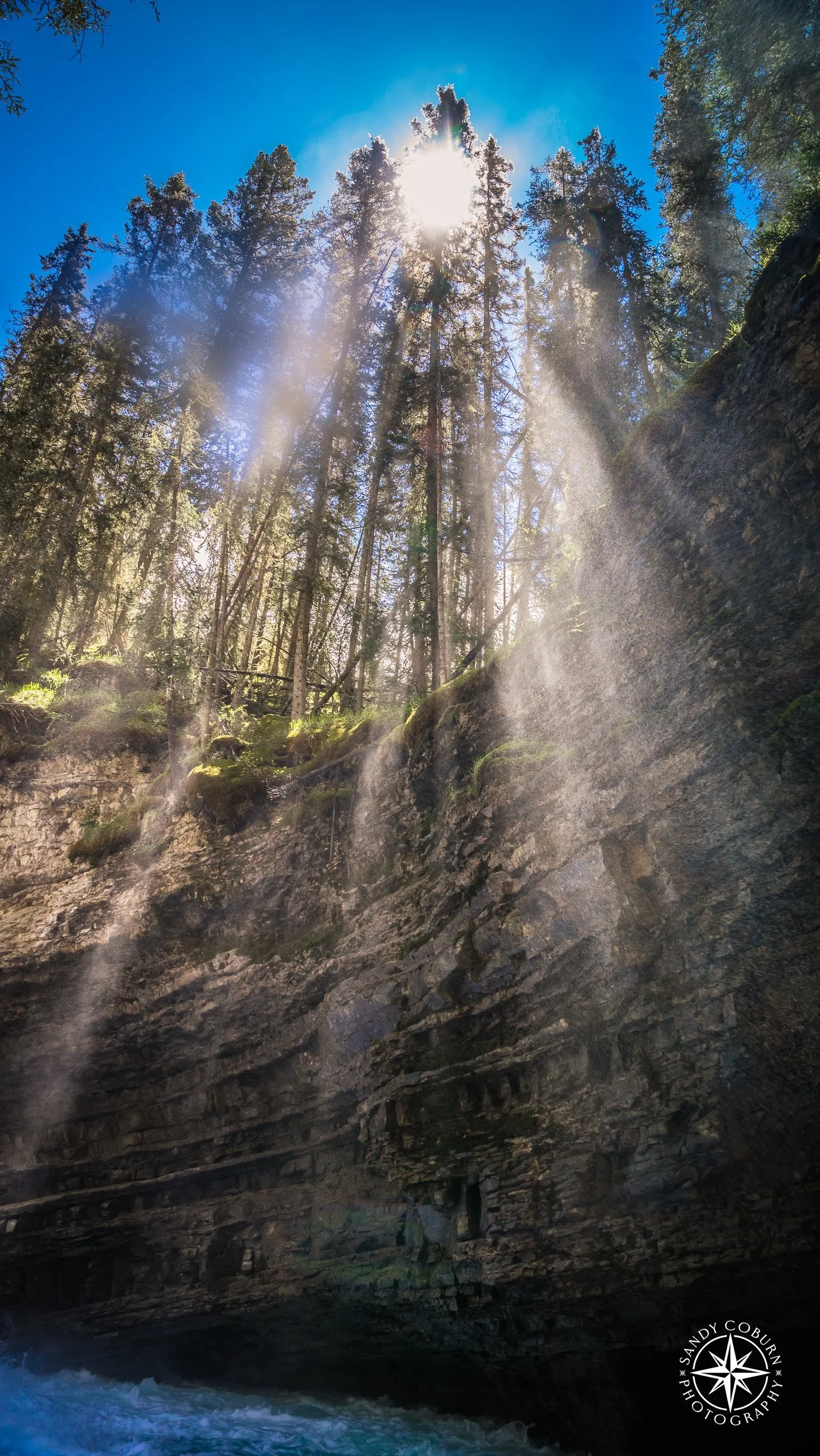 Golden sunbeams pierce through the dense evergreens of Banff, illuminating the forest in a fleeting glow. In this quiet moment, light becomes its own kind of path—revealing what is usually hidden, and guiding the eye toward wonder.
