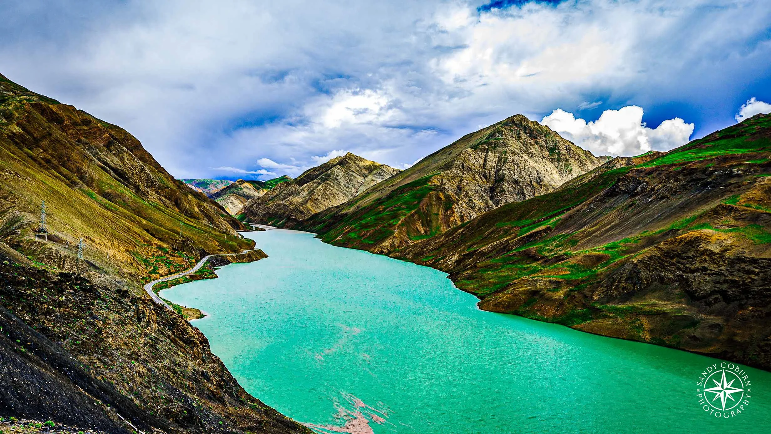 The teal waters of the Yarlong Tsangpo, the earth’s highest river, cut through a landscape of electric green mountains. A narrow road traces the melted glacial course while storm-streaked clouds drift above. In this high stillness, color becomes memory: sharp, surreal, and impossible to forget.
