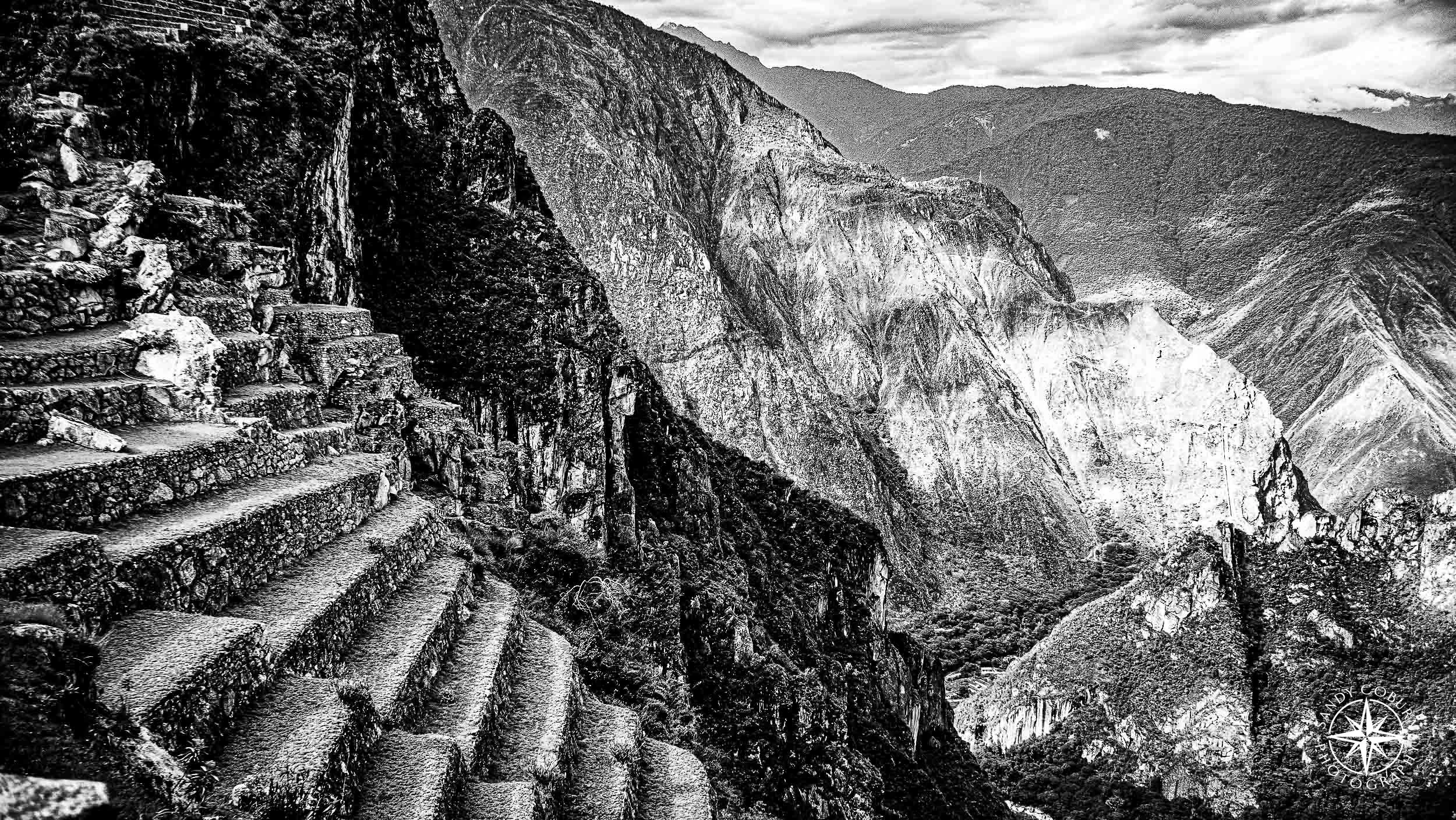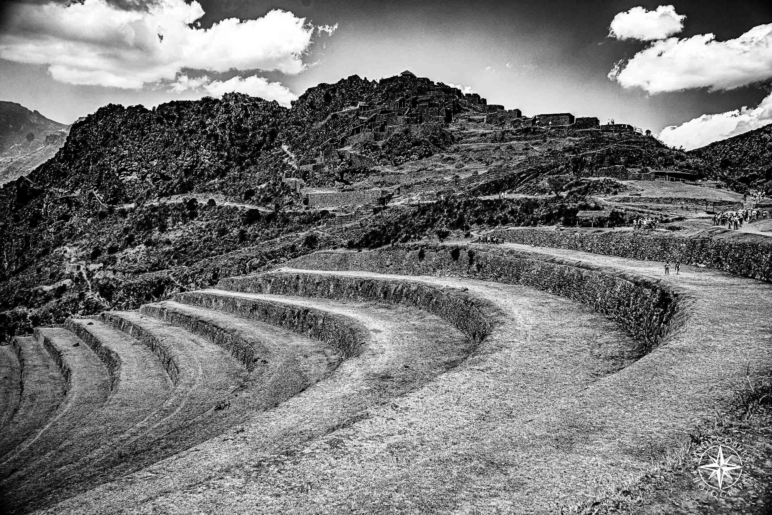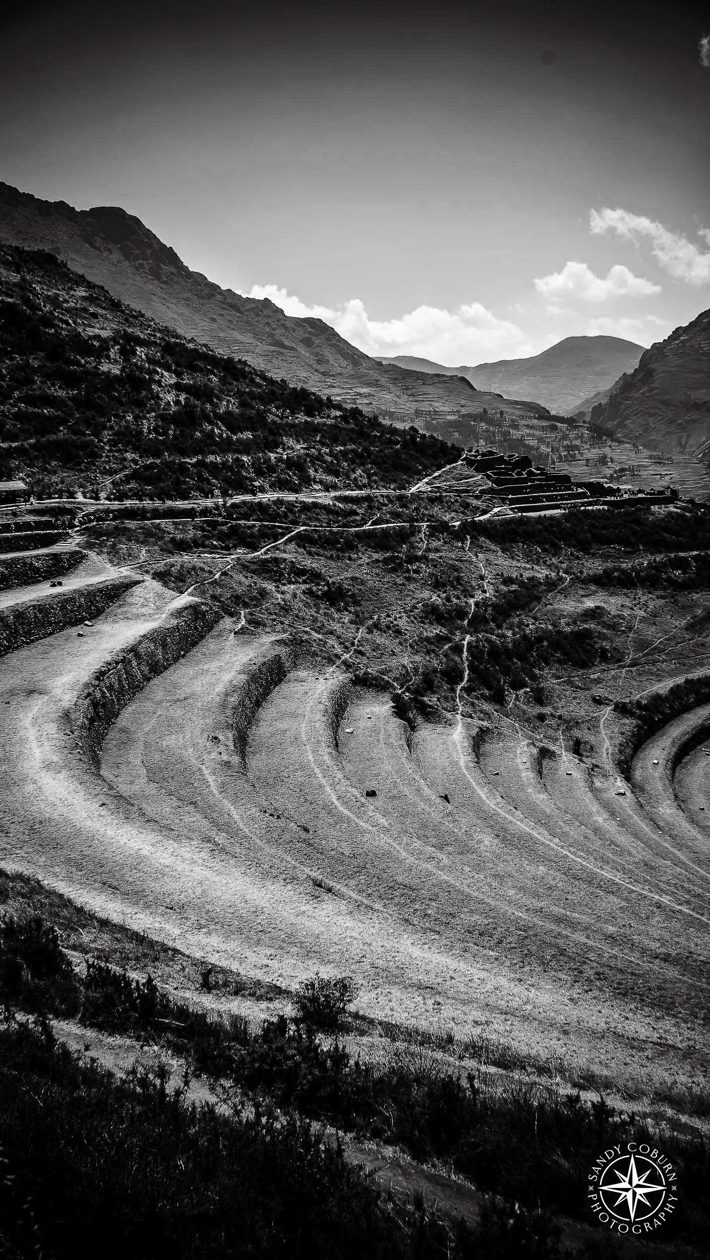 Presented in black and white, this series strips away the vibrancy of the Peruvian highlands to reveal the stark elegance of form and shadow. Each terrace emerges as a quiet rhythm in stone—at once architectural and organic, ancient and alive. Without the distraction of color, the viewer is invited into the texture of reverence itself: the way light moves across a sacred curve, or how a shadow deepens where offerings may once have been laid.