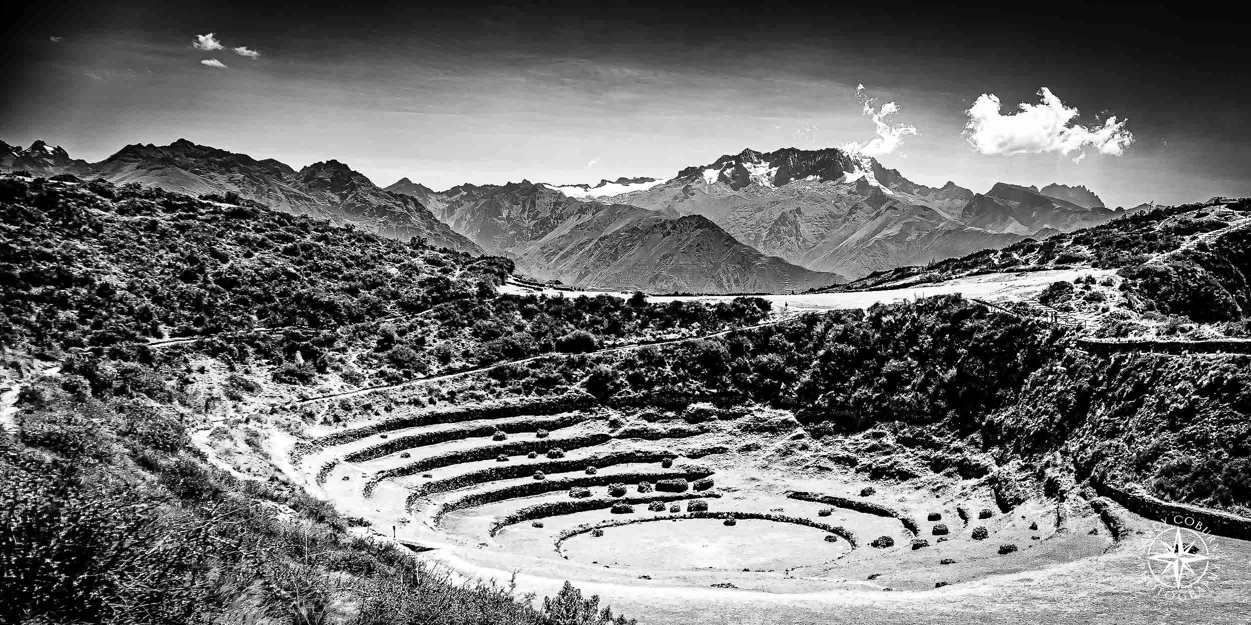 From the sacred circle at Moray, terraces ripple outward and ascend the mountain; the lines feel eternal, as though chiseled into time itself.